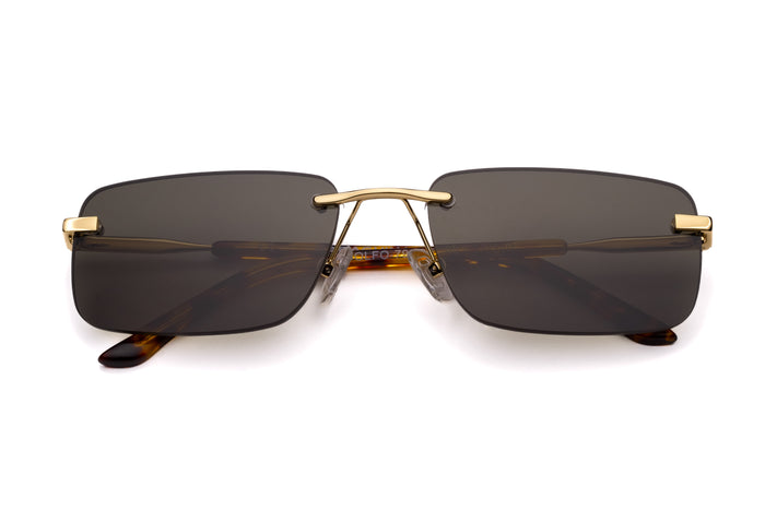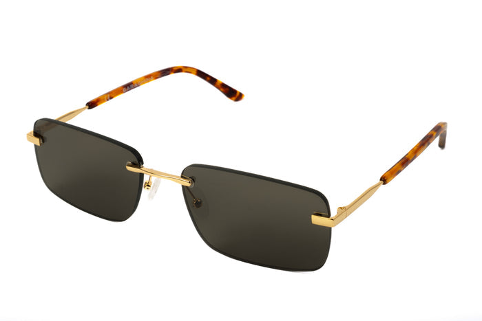 occhiali da sole saraghina modello adolfo in metallo con frame oro e lenti verde