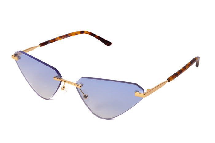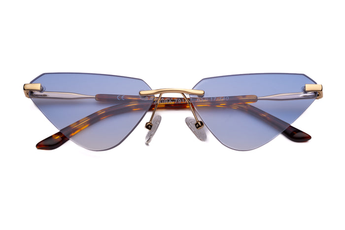 occhiali da sole saraghina modello akira in metallo con frame oro e lenti blu
