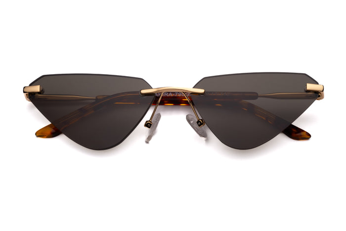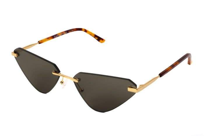 occhiali da sole saraghina modello akira in metallo con frame oro e lenti verde