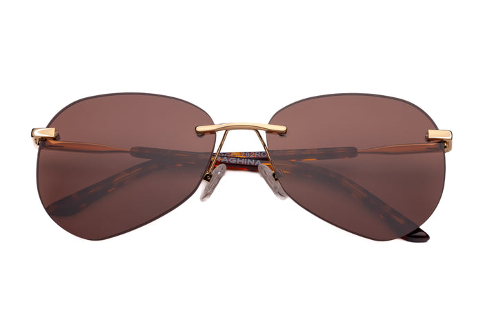 occhiali da sole saraghina modello argo in metallo con frame oro e lenti rosa